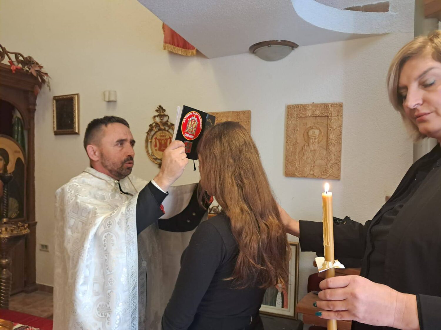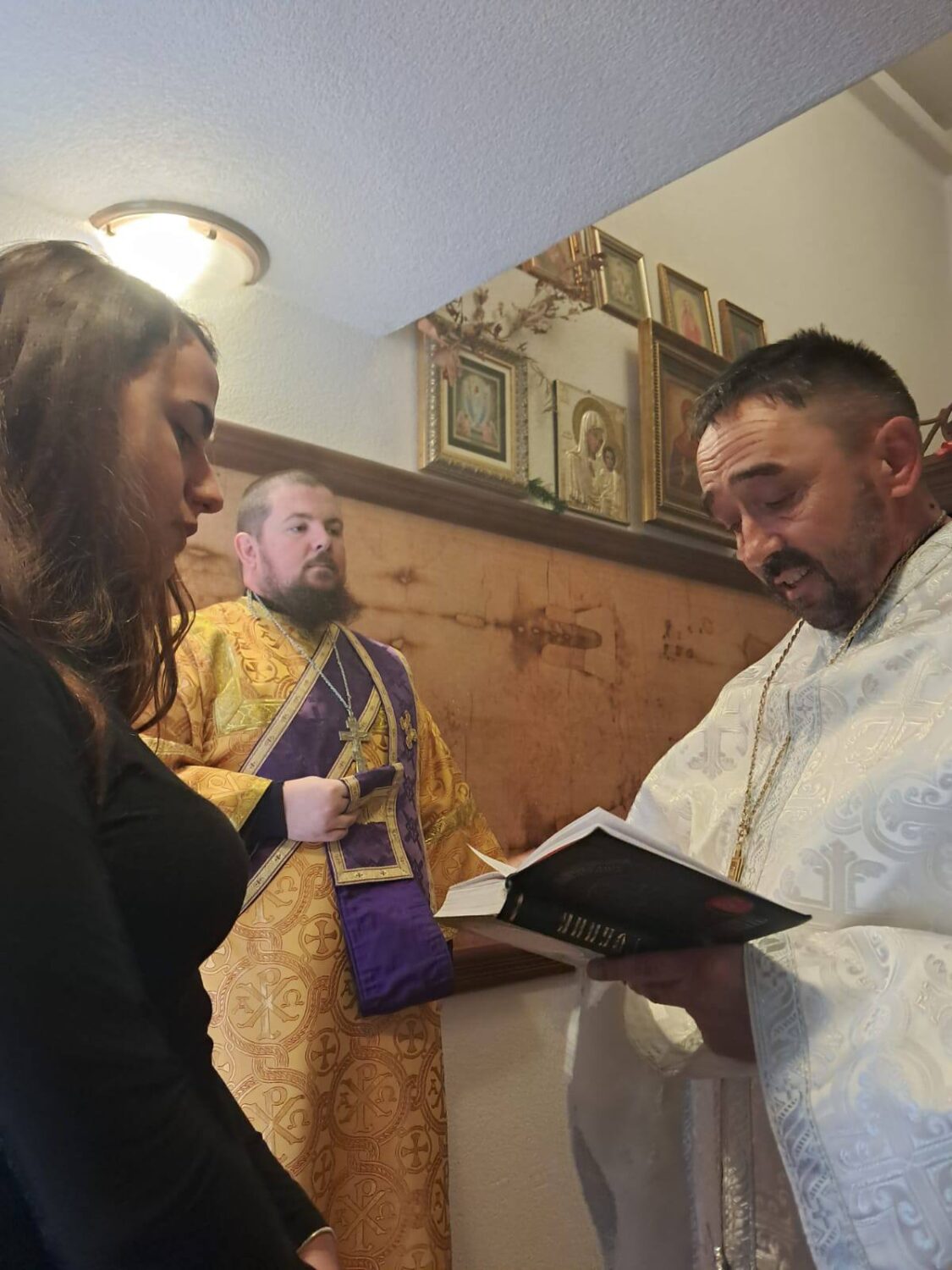 Svete tajne krštenja i miropomazanja je izvršio sveštenik Stevo Mašanović, uz sasluženje protodjjakona Nebojše Aleksića.